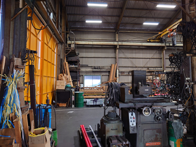 横浜の街工場エリアにあり、また向かいの土手上からのアングルなど、雰囲気があります。 天井は高く、工場内は車一台は入れるほどのスペースは確保できます。